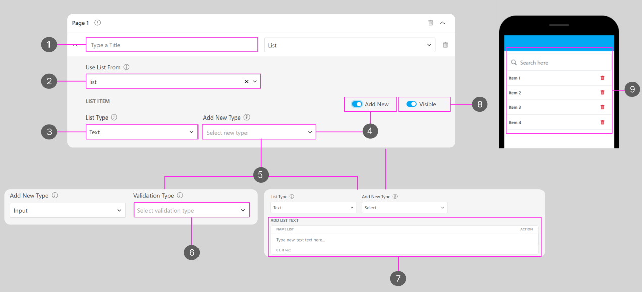 - Add List functions to add a list of data stored in the master data list. The existing data on page-initial or other page-n can be referred to so that it can be directly used, edited/added as needed. The data entered is in text format.